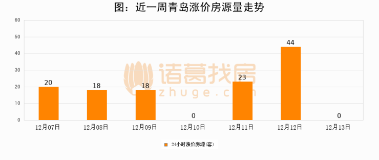 根据诸葛找房数据显示,青岛24小时涨价房源量为0套,较12月12日减少44套,环比下降100%。与此同时,涨价房源占比小幅回落,对于购房者来说是一个入市窗口期,购房者可抓住时机入市。