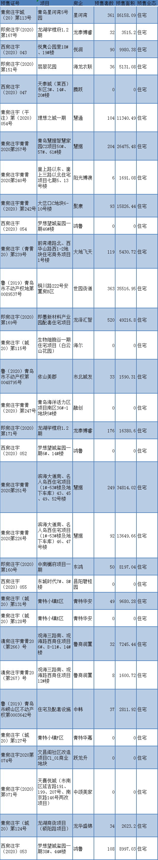 青岛市商品房预售许可证获取情况