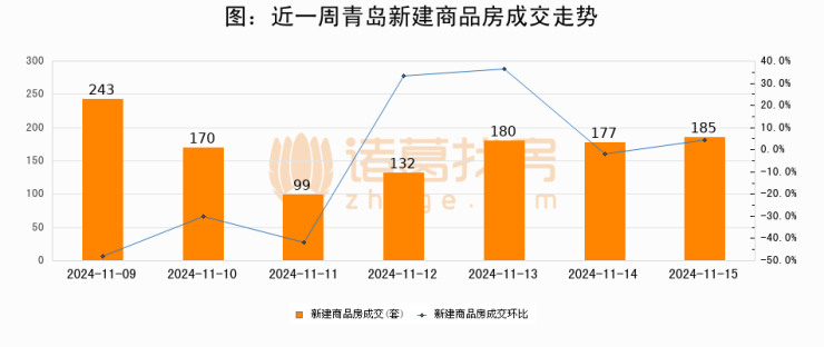 【青岛成交日报】11月15日新房成交185套、二手房179套;涨价房源2套