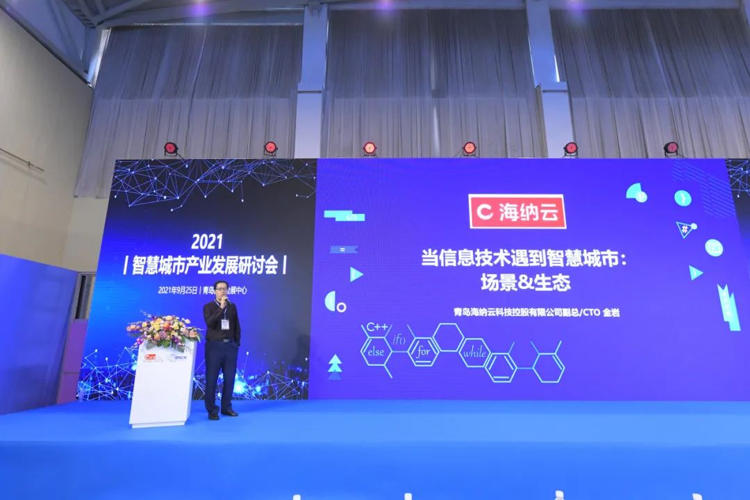 ▲金岩在2021智慧城市产业发展研讨会上发表演讲