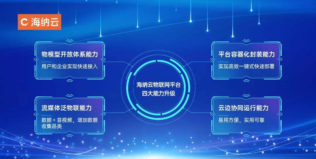 首先,通过物模型的开放能力,实现了针对用户和企业外部的快速接入;其次,基于传统数据流,扩展到音视频的流媒体,增加了数据收集的品类,打造物联网平台这种泛物联的能力;第三点,针对数据平台部署,我们加入容器化的能力,实现高效的一键式快速部署;最后,针对社区/园区设备边缘化、碎片化比较严重,融入了云边协同、边缘计算的能力,大大提升了整个物联网平台的接入效率,打造了易用方便,实用可靠的全方位产品体系。