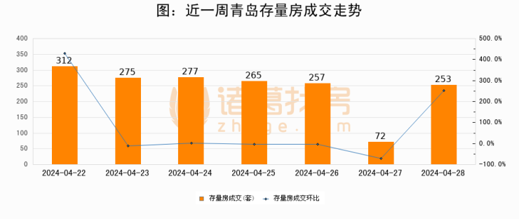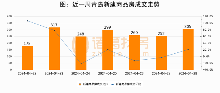 【青岛成交日报】04月28日新房成交305套、二手房253套;涨价房源34套