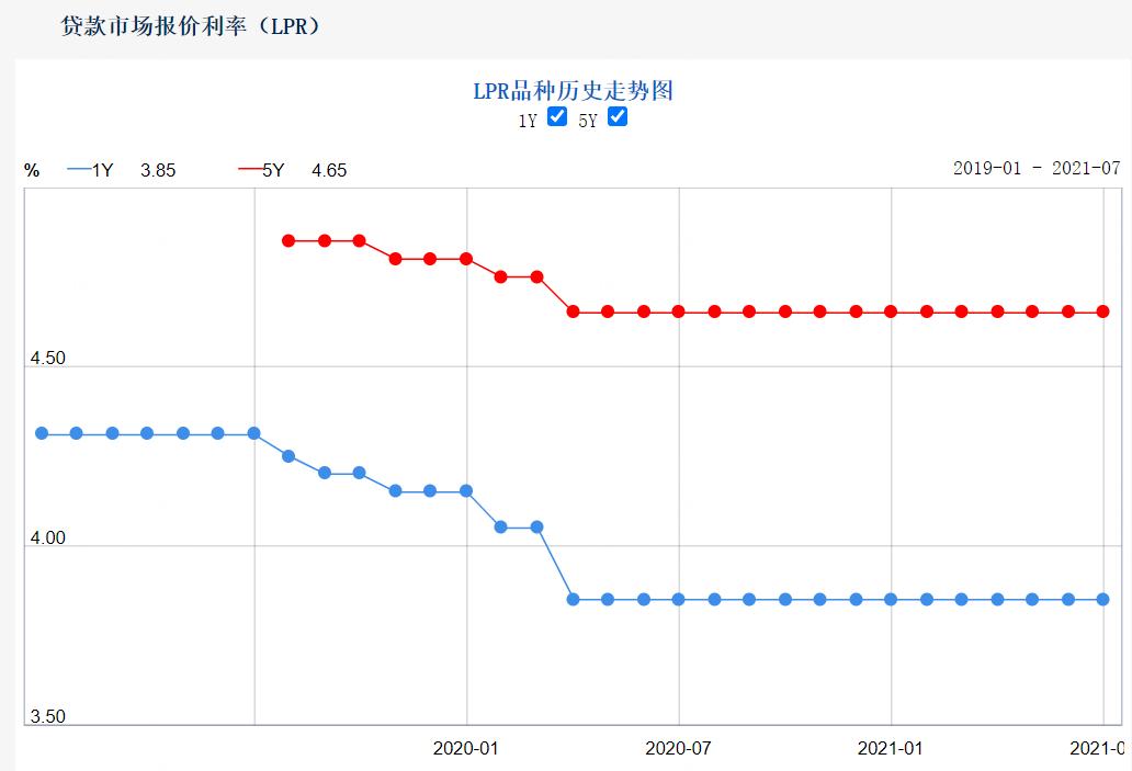 备注:文中内容转自中国人民银行《2021年7月20日贷款市场报价利率(LPR)公告》。