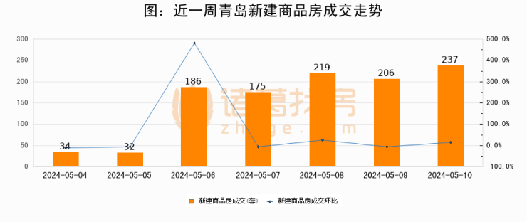 【青岛成交日报】05月10日新房成交237套、二手房282套;涨价房源29套