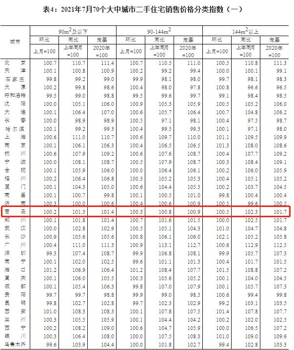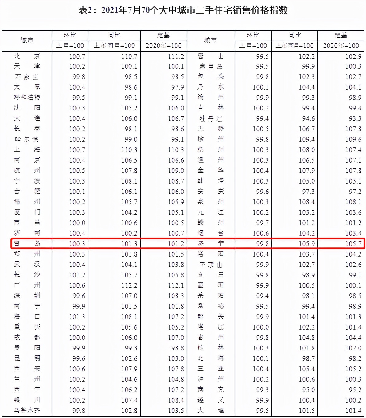 在二手房方面,青岛二手房房价仍在延续上涨态势,环比上涨0.3%。