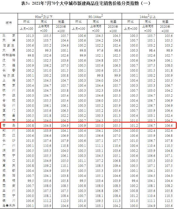 在新房方面,青岛新房房价环比上涨1%,涨幅领跑70城。