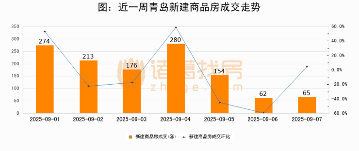 【青岛成交日报】09月07日新房成交65套、二手房51套;