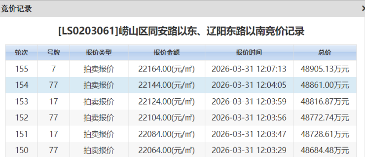 燃爆!155轮!金茂|海信|青特|海通争夺崂山地块,花落金茂
