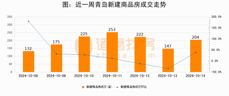 【青岛成交日报】10月14日新房成交204套、二手房348套;涨价房源1套
