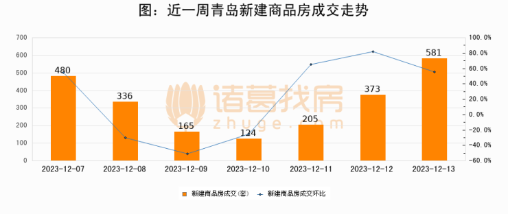【青岛成交日报】12月13日新房成交581套、二手房224套;涨价房源57套