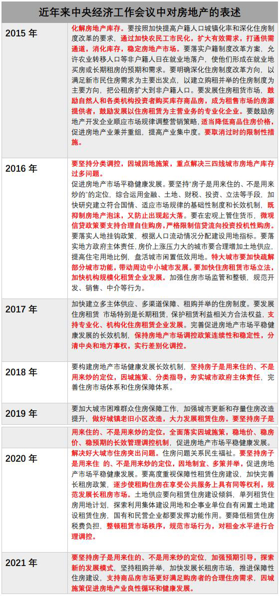 此次会议中,再次强调“要坚持房子是用来住的、不是用来炒”的定位,这已是中央经济工作会议连续第四年明确“房住不炒”。