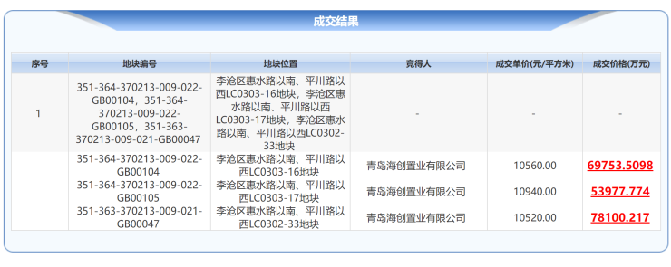 12月2日,李沧东李惠水路3宗低密用地整体出让成功,最后底价成交被岛海创置业有限公司竞得,总价20.18亿,总建面19万㎡宅地。