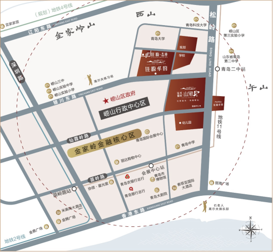 佳源华府,作为佳源在青岛的首子,定位打造百万方时代人物的国际都会生活中心,总占地约25.52万㎡,总建筑面积约110万㎡,涵盖高端住宅、集中商业、国际公寓、写字楼办公等业态,同时规划主题商业、星级酒店等多种业态,位于寸土寸金的金家岭金融核心区、崂山区行政政务中心双核芯区位,直线距离石老人海岸线约1.2KM,周边荟萃全资源鼎级配套,青大实验附属学校位于项目5#地块,涵盖幼儿园至大学优质学府,五大购物广场环伺,周边有青岛大剧院、国际会展中心等城市级配套,未来土地价值无限发展更是有目共睹。