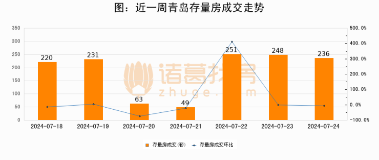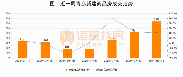 【青岛成交日报】07月24日新房成交370套、二手房236套;涨价房源24套