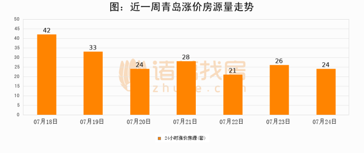 根据诸葛找房数据显示,青岛24小时涨价房源量为24套,较07月23日减少2套,环比下降7.7%。与此同时,涨价房源占比小幅回落,对于购房者来说是一个入市窗口期,购房者可抓住时机入市。