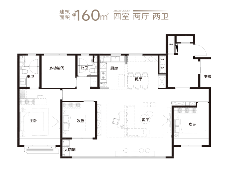 建面约160㎡宽幕大四居,约16.5米五南向大面宽,约9.6米跑道式双联阳台,养花、品茗、瑜伽……盛放生活万干想象。