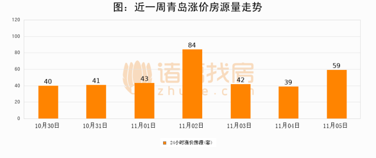 根据诸葛找房数据显示,青岛24小时涨价房源量为59套,较11月04日增加20套,环比上涨51.3%。与此同时,涨价房源占比小幅扩大,业主信心有所提升。