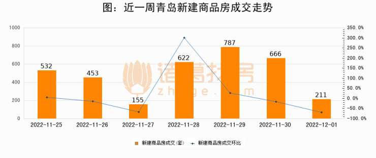 【青岛成交日报】12月01日新房成交211套、二手房161套;涨价房源272套