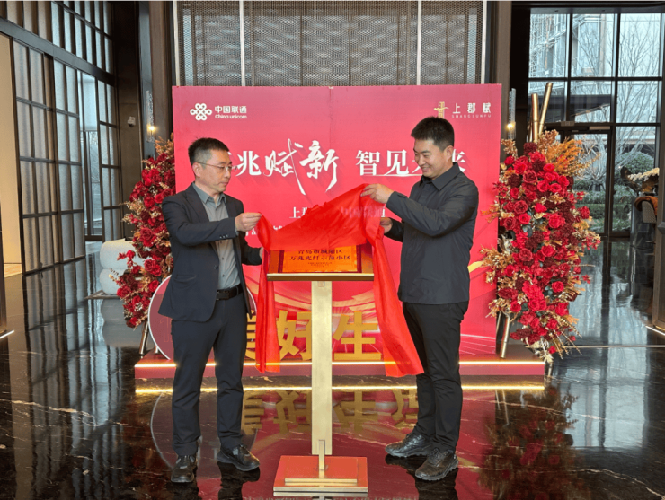2025年12月12日,一场标志着高端人居与前沿信息基础设施深度融合的盛事在青岛城阳区上演——上郡赋与中国联通城阳区分公司 “万兆赋新,智见未来”万兆光纤示范小区合作项目正式揭牌 。双方领导共同揭牌,兑现“革命性”的高品质网络生活标准。