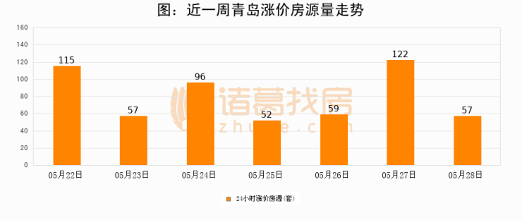 根据诸葛找房数据显示,青岛24小时涨价房源量为57套,较05月27日减少65套,环比下降53.3%。与此同时,涨价房源占比小幅回落,对于购房者来说是一个入市窗口期,购房者可抓住时机入市。