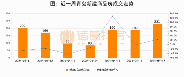 【青岛成交日报】04月17日新房成交231套、二手房282套;涨价房源123套