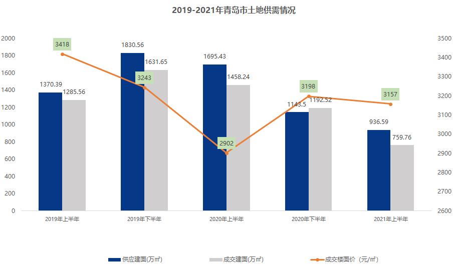 2021年上半年青岛楼市 土地供应市场“量缩价涨”