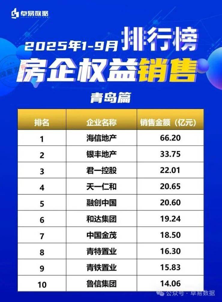 本榜单是根据卓易数据的独立研究,将青岛所有可售项目按照工商注册股权逐一进行权益拆分,剔除重复并表、重复计算的统计方法,展现一个客观的房企商品房销售权益“战绩”,更能清楚一家房企的实际业绩,更好的用于课题研究和监测。
