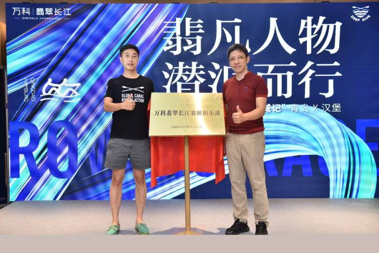 在活动最后,由深潜运动健康董事长冯楠,翡翠长江赛艇俱乐部主理人、万科翡翠长江业主孟繁亮共同为翡翠长江业主赛艇俱乐部揭牌,后期将由万科与各位业主共同举办业主赛艇活动,推广赛艇运动。