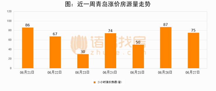根据诸葛找房数据显示,青岛24小时涨价房源量为75套,较06月26日减少12套,环比下降13.8%。与此同时,涨价房源占比小幅回落,对于购房者来说是一个入市窗口期,购房者可抓住时机入市。
