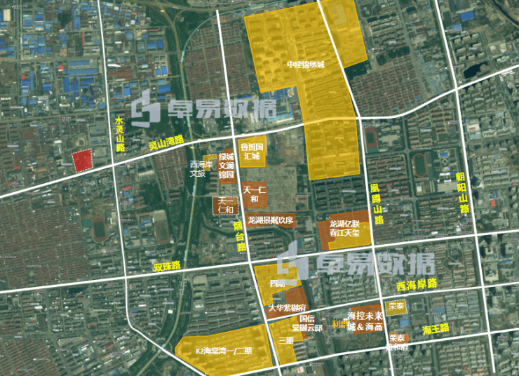 地块位于胶南新城区西侧,周边为村庄界面差,而地块东侧胶南新城区的核心区有绿城、天一仁和、龙湖、大华、国信以及荣泰等多个项目在售。