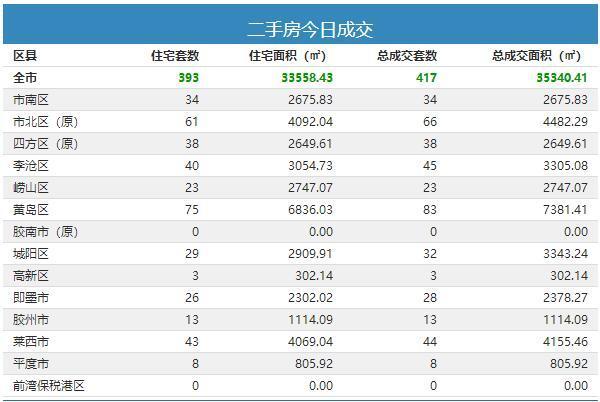 一手房成交统计二手房成交统计根据青岛网上房地产交易数据显示,3日,岛城一手房、二手房市场各物业类型共成交1004套。