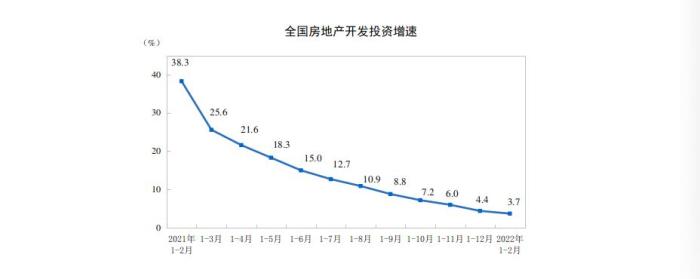 1—2月份,全国房地产开发投资14499亿元,同比增长3.7%;其中,住宅投资10769亿元,增长3.7%。