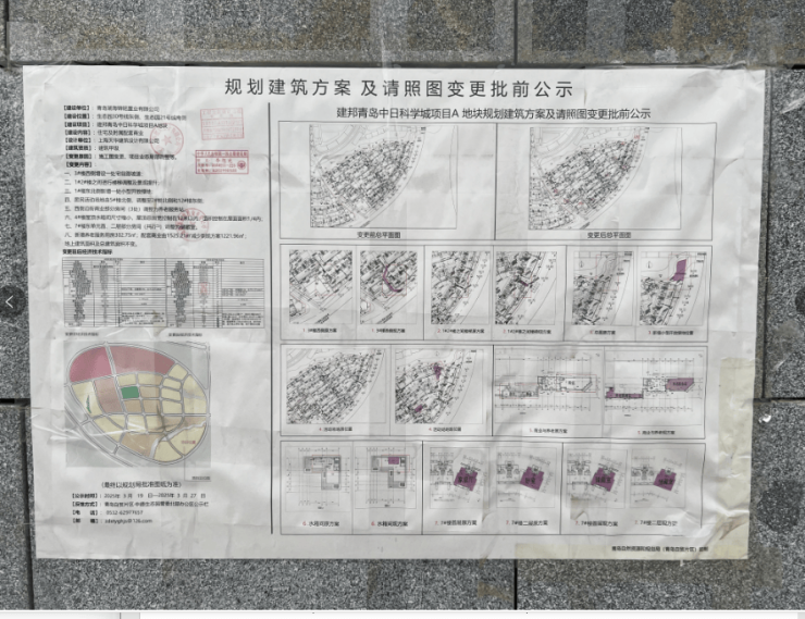 我们在项目现场还看到了项目规划变更的公示,其中就包括3号楼旁这处从无到有的坡前路。耐人寻味的是,这份变更规划图纸的公示时间是2025年3月19日——2025年3月27日,它的出现不仅与陈先生等业主购买此房产的2023年和项目交付时的2024年底形成时间差,侧证了业主不知情的事实,也让“图纸上早有了”的说法有些尴尬。