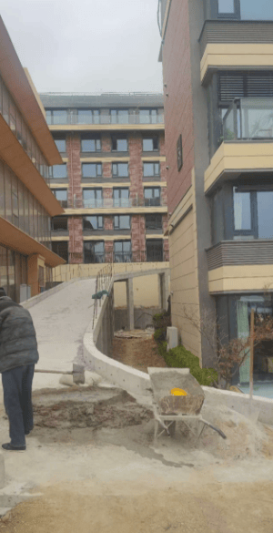 这样一个“添头”对居住环境有没有影响?答案显而易见。尤其是3号楼的部分业主,这座桥最高处与下叠的二楼几乎等高,对采光,对视野、对居住隐私不可能毫无影响。还有业主担心的噪音问题,安全问题也不是毫无道理,虽然功能是作为消防、救护等用途的紧急通道,但目测这个坡道的宽度对消防、救护等大型车辆的尺寸而言,并不宽裕,在冲起来的紧急情境下,有没有可能发生次生事故,危及3号楼安全?