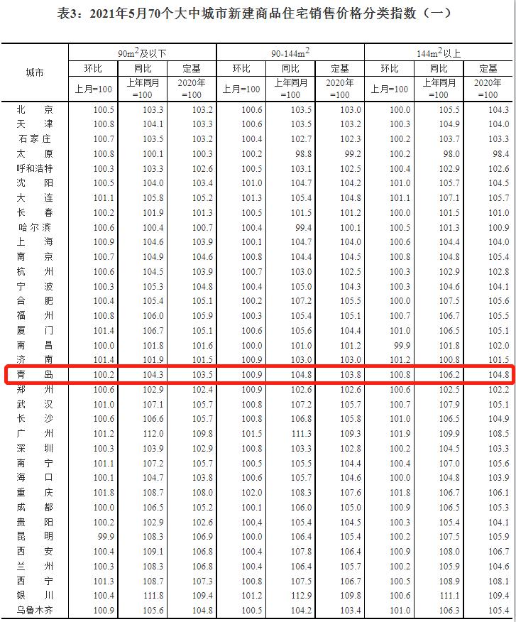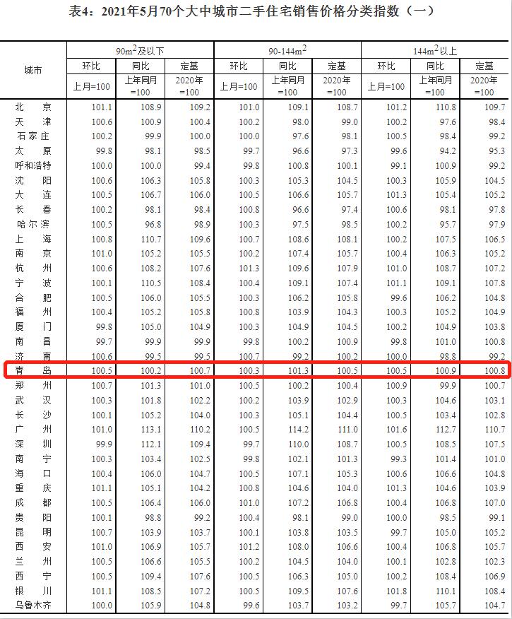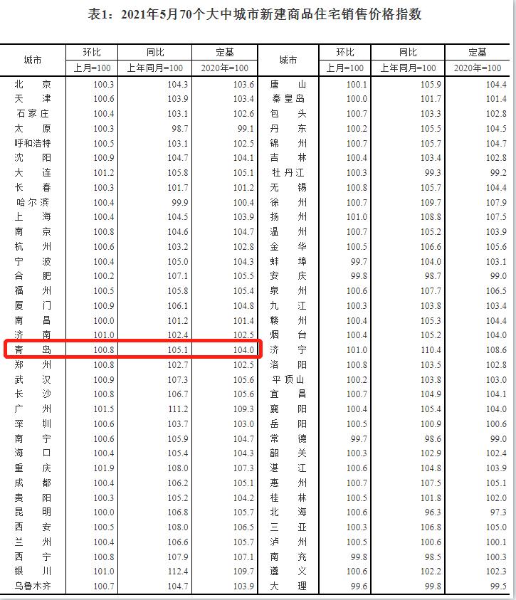 6月17 日,国家统计局发布《2021年5月份70个大中城市商品住宅销售价格变动情况》。