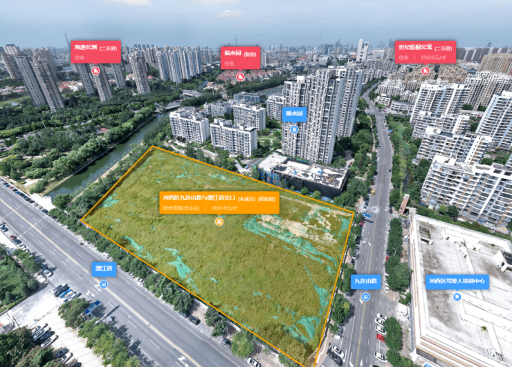 编号为津西潭(挂)2022-009号的河西区九连山路与潭江道交口地块为本批次成交的地块中少有一宗溢价成交的地块。