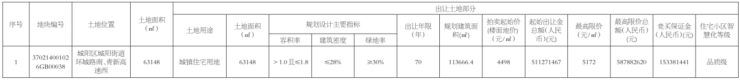 起价4498元/㎡ 城阳11.37万㎡住宅地块5.11亿上市