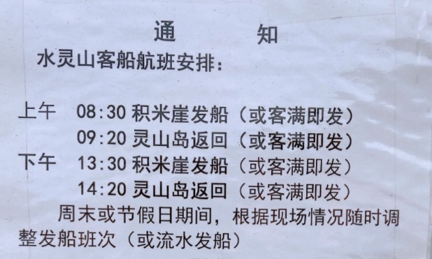 *交通方式:至积米崖码头乘船,船航安排如下