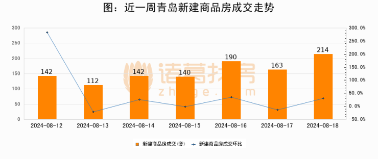 【青岛成交日报】08月18日新房成交214套、二手房47套;涨价房源63套