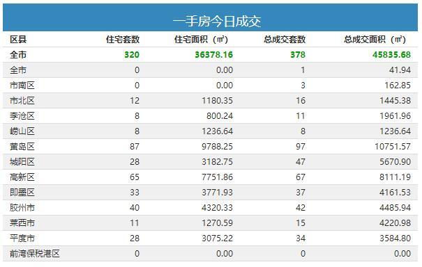 4日青岛新房成交378套 黄岛区住宅成交87套夺冠