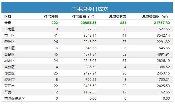青岛楼市成交 2021-01-04 18:24:50