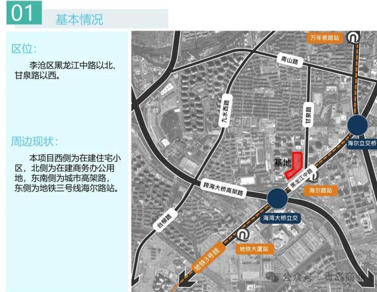 该项目位于青岛市李沧区,东临甘泉路与青岛地铁三号线,西侧为在建住宅小区云谷金茂府,北侧为在建商务办公用地。项目总占地面积约2.88万平方米,总建筑面积约11.3万平方米,其中地上建筑面积约为6.1万平方米,地下建筑面积约5.2万平方米。
