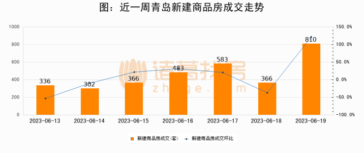 【青岛成交日报】06月19日新房成交810套、二手房272套;涨价房源61套