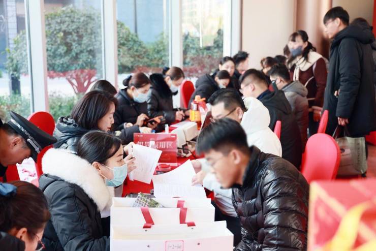 为让业主拥有到省心、舒心的收房体验,项目提前统筹部署,精心打造全流程标准化交付服务。签到区布局规整有序,专属礼品陈列完备,工作人员以专业高效的服务引导业主办理手续;等候区贴心配备热饮茶点,营造出温暖舒适的休憩氛围,尽显人文关怀。
