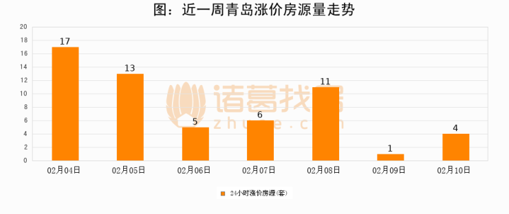 根据诸葛找房数据显示,青岛24小时涨价房源量为4套,较02月09日增加3套,环比上涨300%。与此同时,涨价房源占比小幅扩大,业主信心有所提升。