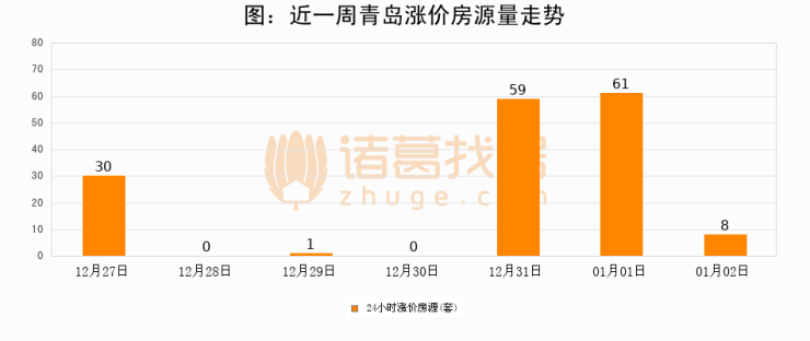 根据诸葛找房数据显示,青岛24小时涨价房源量为8套,较01月01日减少53套,环比下降86.9%。与此同时,涨价房源占比小幅回落,对于购房者来说是一个入市窗口期,购房者可抓住时机入市。