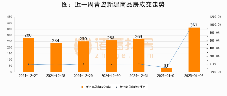 【青岛成交日报】01月02日新房成交361套、二手房247套;涨价房源8套