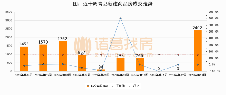 【青岛成交周报】第12周新房成交2402套,二手房1516套,涨价房源323套