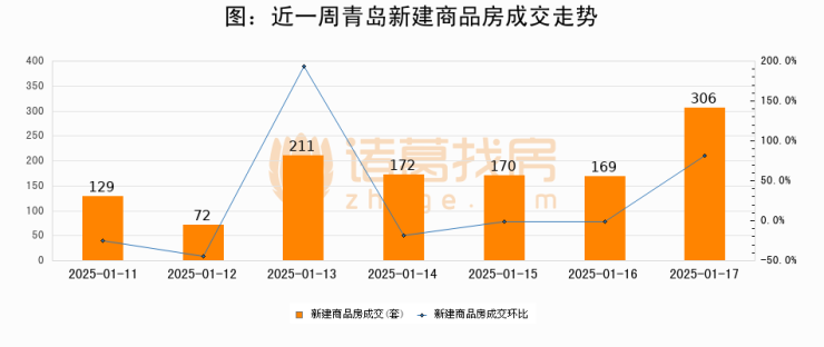 【青岛成交日报】01月17日新房成交306套、二手房199套;涨价房源47套