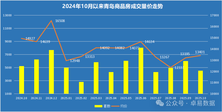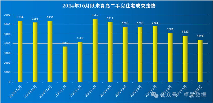2025年截至到10月,青岛新建商品房签约51880套(退房已剔除,以下同),成交645.92万㎡,成交总价880.51亿;签约套数、面积和签约金额同比去年下降6.13%、5.48%和8.46%;二手房成交套55783套(住宅52336套),二手房交易量明显高于新房,新房刚性需求流向二手房。青岛新房、二手房2025年1-10月合计成交约10.8万套。